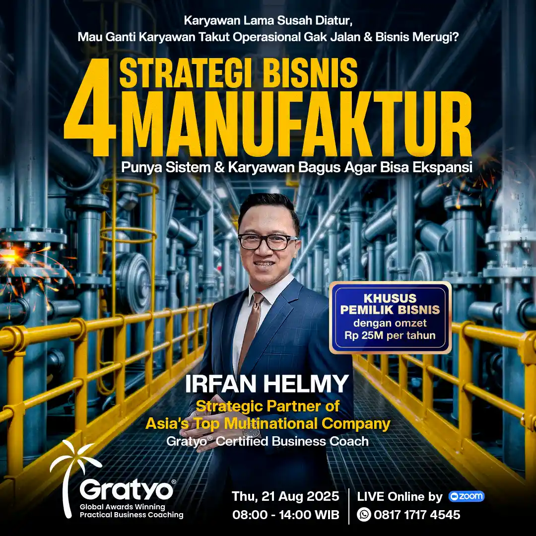 Bersama puluhan high-calibre Certified Business Coach di Gratyo® Global Awards Winning Practical Business Coaching Company berhasil membantu bisnis dengan revenue miliaran hingga triliunan rupiah go to the next level, bisa IPO, hingga bisnis Profitable & AUTO-PILOT™.