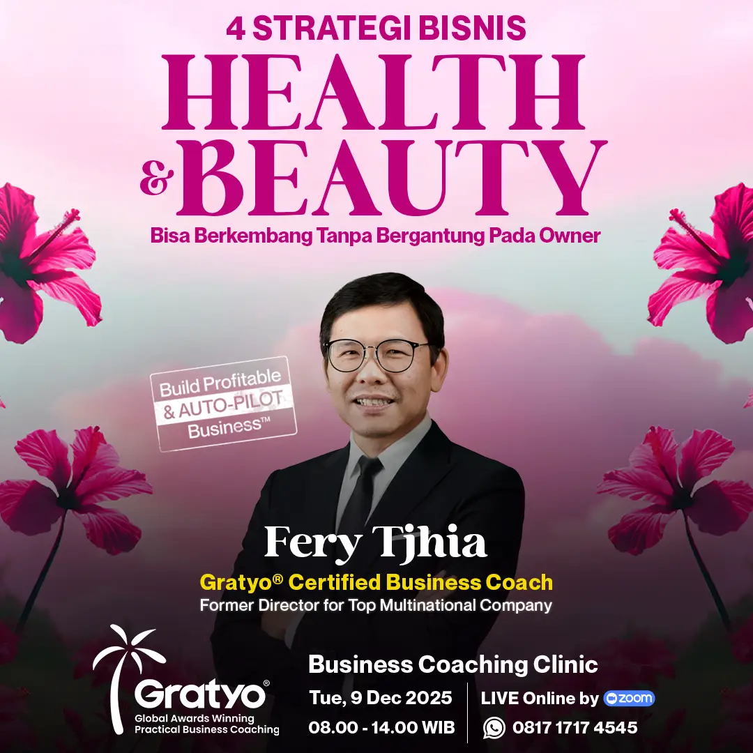 Bersama puluhan high-calibre Certified Business Coach di Gratyo® Global Awards Winning Practical Business Coaching Company berhasil membantu bisnis dengan revenue miliaran hingga triliunan rupiah go to the next level, bisa IPO, hingga bisnis Profitable & AUTO-PILOT™.